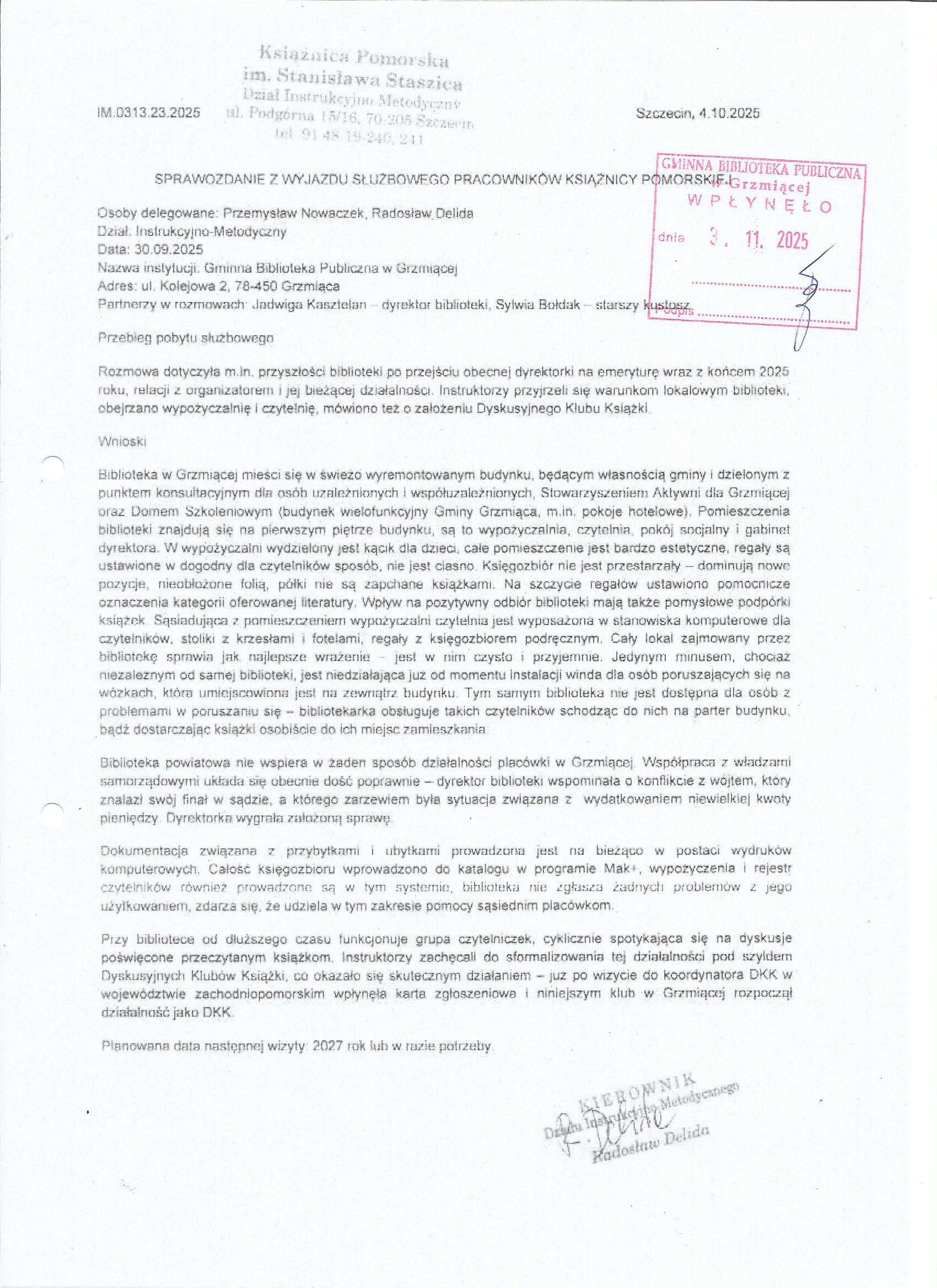 Sprawozdanie z wyjazdu służbowego pracowników Książnicy Pomorskiej - 04.10.2025